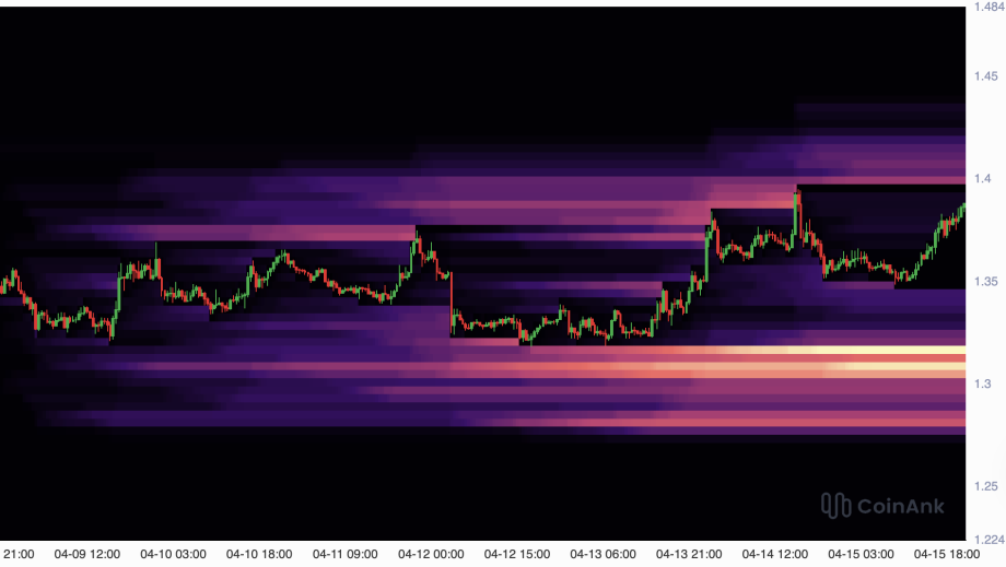 အပြုသဘောဆောင်သောတိုးတက်မှုရှိသော်လည်း၊ အောက်ခံသည် ဆက်နွယ်နေသေးသည်။ ဖျက်သိမ်းမှုအပူမြေပုံတွင် အကြီးဆုံးငွေထုတ်ချေးမှုအစုသည် $1.30 ဧရိယာတွင်ရှိကြောင်း ပြသသည်။ အောက်သို့ ရွေ့လျားနိုင်သော ဤဇုန်တွင် ငွေဖြစ်လွယ်မှု အများအပြား ရှိသည်။ အထူးသဖြင့် ဆင်းသက်လာဈေးကွက်တွင် ပိုမိုသွင်ပြင်လက္ခဏာရှိသော ဖွဲ့စည်းပုံတစ်ခုတွင်၊ ထိုကဲ့သို့သော နယ်ပယ်များကို စမ်းသပ်ခံရနိုင်ခြေ တိုးလာပါသည်။ ဤဇုန်သို့ ဆုတ်ယုတ်မှုသည် အံ့သြစရာမဟုတ်သော်လည်း လက်ရှိပုံနှင့် အံဝင်ခွင်ကျဖြစ်မည်။